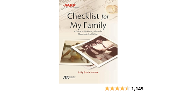 Aba Aarp Checklist For My Family A Guide To My History Financial Plans And Final Wishes By Sally Balch Hurme